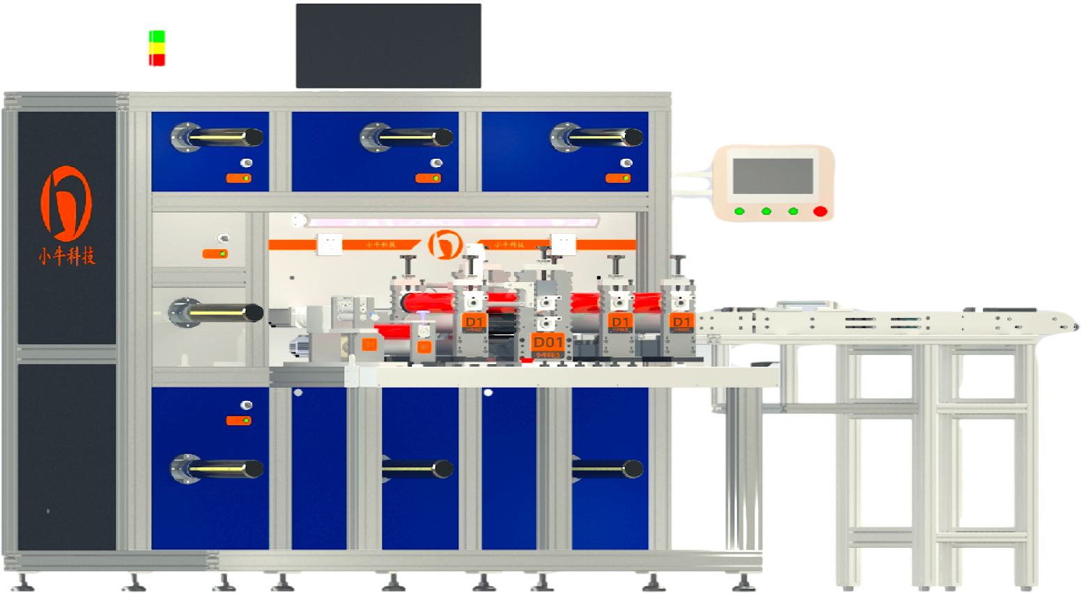 小牛科技是专业模切机、分切机、裁切机、覆膜机、敷料贴机、膏药机、口罩机等多机功能一体化的圆刀模切机的研发定制生产销售公司